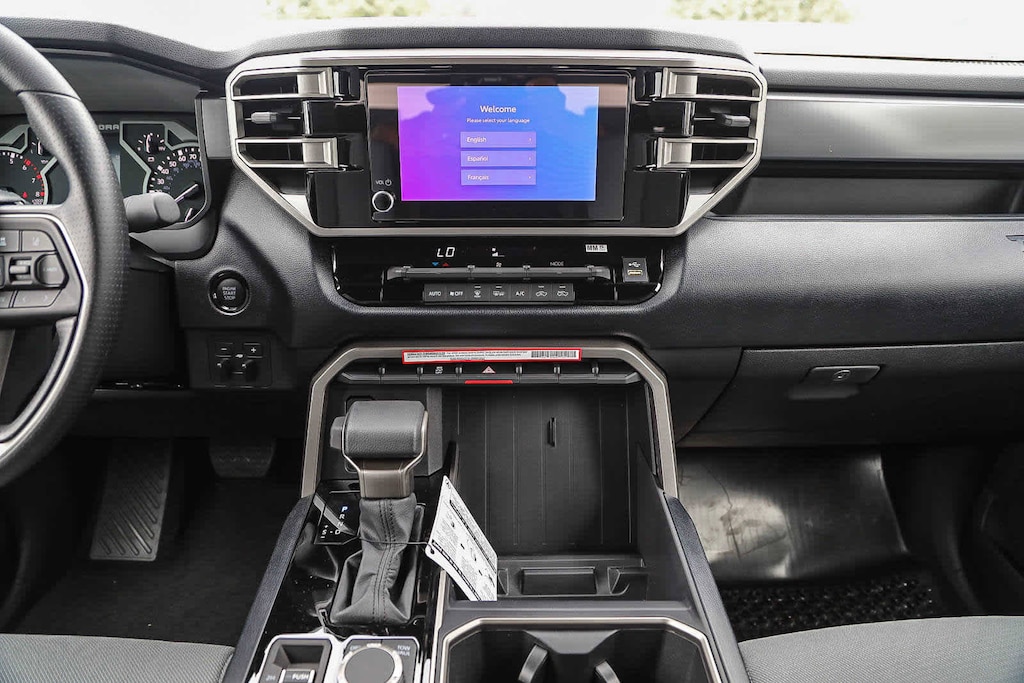 Toyota Tundra SR5 4x4 de 2025, color gris 01g3, transmisión automática de 10 velocidades, motor V6 de 3,4 litros, tapicería de tela en color Boulder.