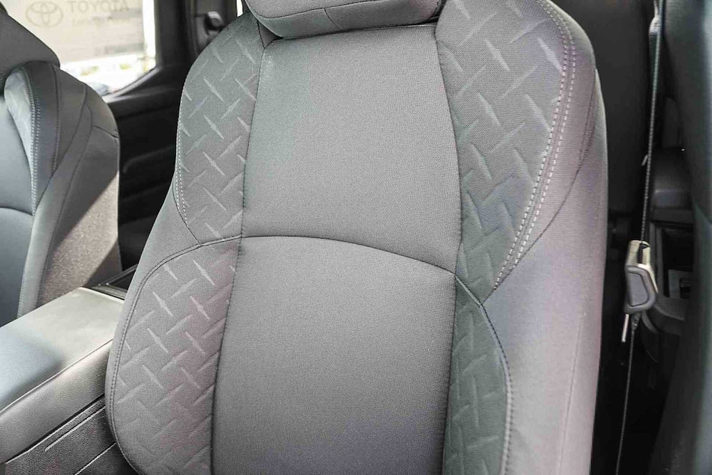 • Asientos tapizados en tela; asientos del conductor y del acompañante ajustables manualmente en 6 posiciones con soporte lumbar ajustable eléctricamente en 2 posiciones sólo en el asiento del conductor.