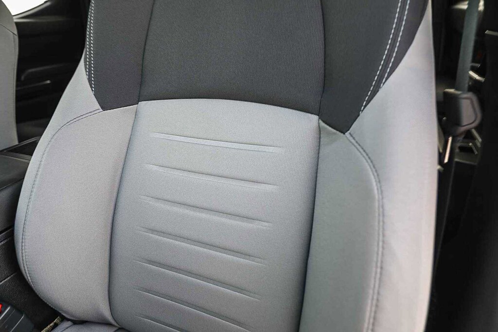 • Asientos tapizados en tela; asientos del conductor y del acompañante ajustables manualmente en 6 posiciones con soporte lumbar ajustable eléctricamente en 2 posiciones sólo en el asiento del conductor.